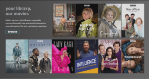 Biblio+ offers unlimited streaming with your library card. Strong selection of British / foreign language. Simply click the link or download the app for Apple devices (iPhone, iPad, Apple TV), Android phone and tablet, Amazon Fire TV, and Roku. Biblio+ is offered to Rutland Free Library cardholders by the state Department of Libraries.